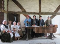 So, we have our visiting JP and his scribe, various Parishioners on trial or giving witness, and the public, acting as the jury.